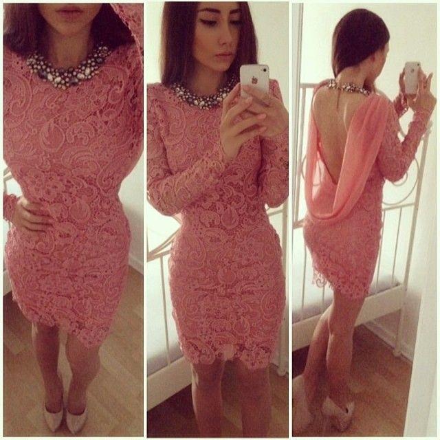 Prom Dresses Short Coral Lace Cocktail Dresses High Neck Long Sleeve Cowl Open Back Sheath Party Dr On Luulla